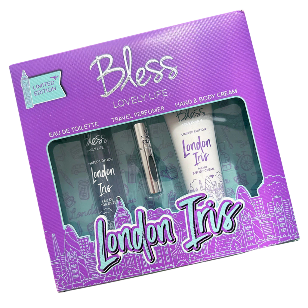 Bless - Estuche London Iris Fragancia 50ML + Perfumero + Crema de Manos y Corporal 80Ml